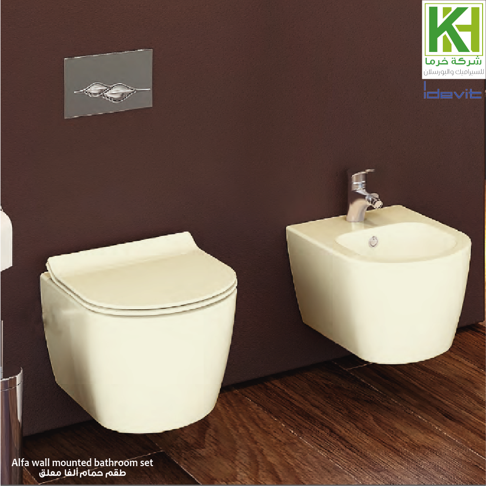Alpha wall-mounted White & ivory bathroom consisting of (Wc pan, bidet, Hally washbasin)