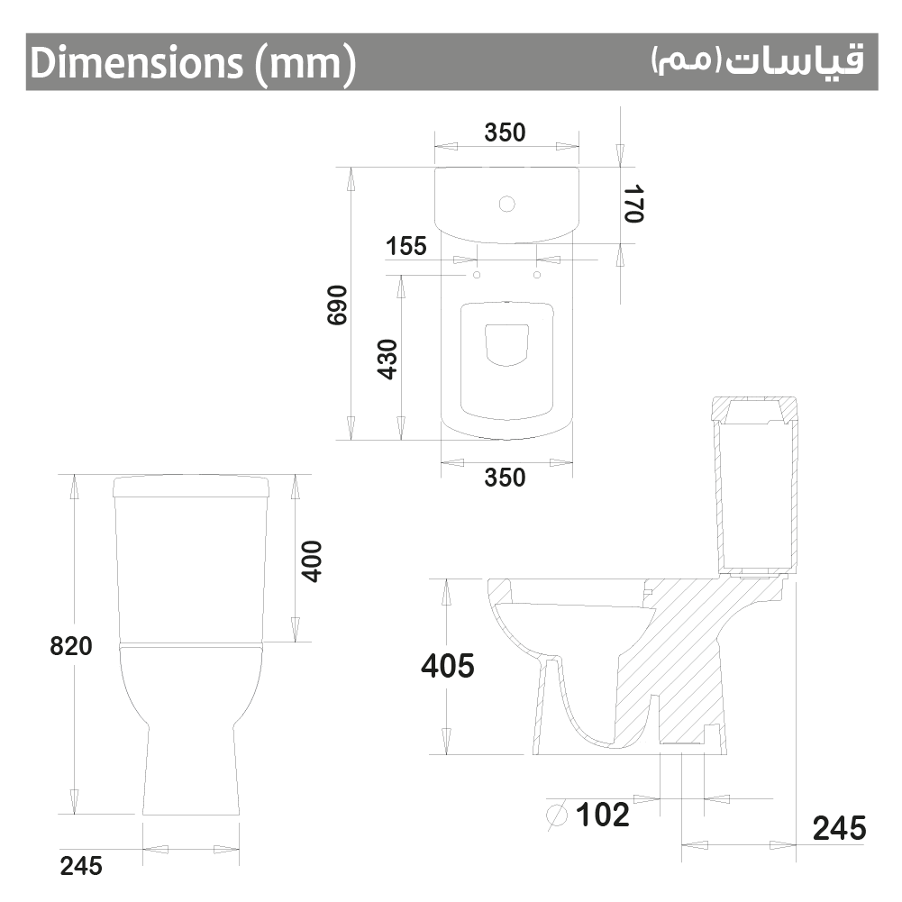 - Full functioning with 6 liter water economic flushing mechanism